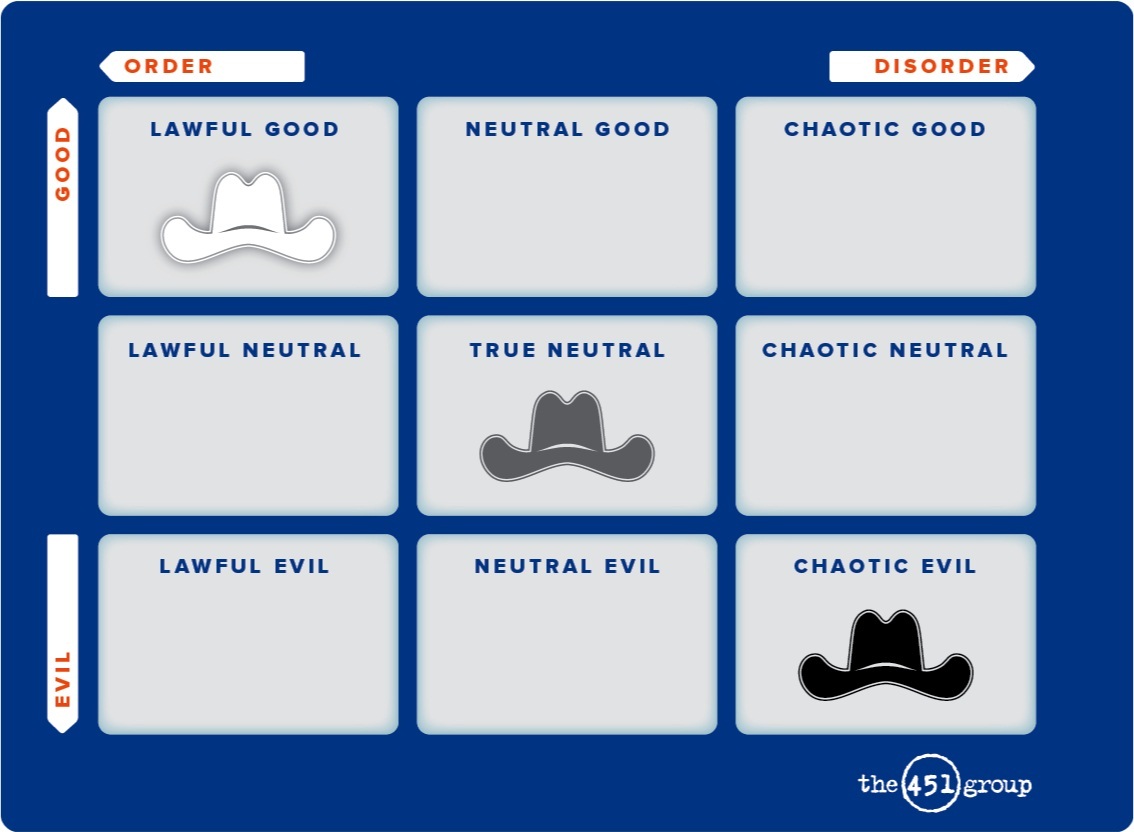 This article was Josh Corman’s first step to start public discourse on Anonymous in the security community. This is what introduced the term “chaotic actors” – as opposed to “good” or “evil”. This eventually led to the formation of the DEF CON 19 panel. This (not fully thought out) 3×3 below sparked Martin and Corman’s collaboration on the topic of Anonymous.